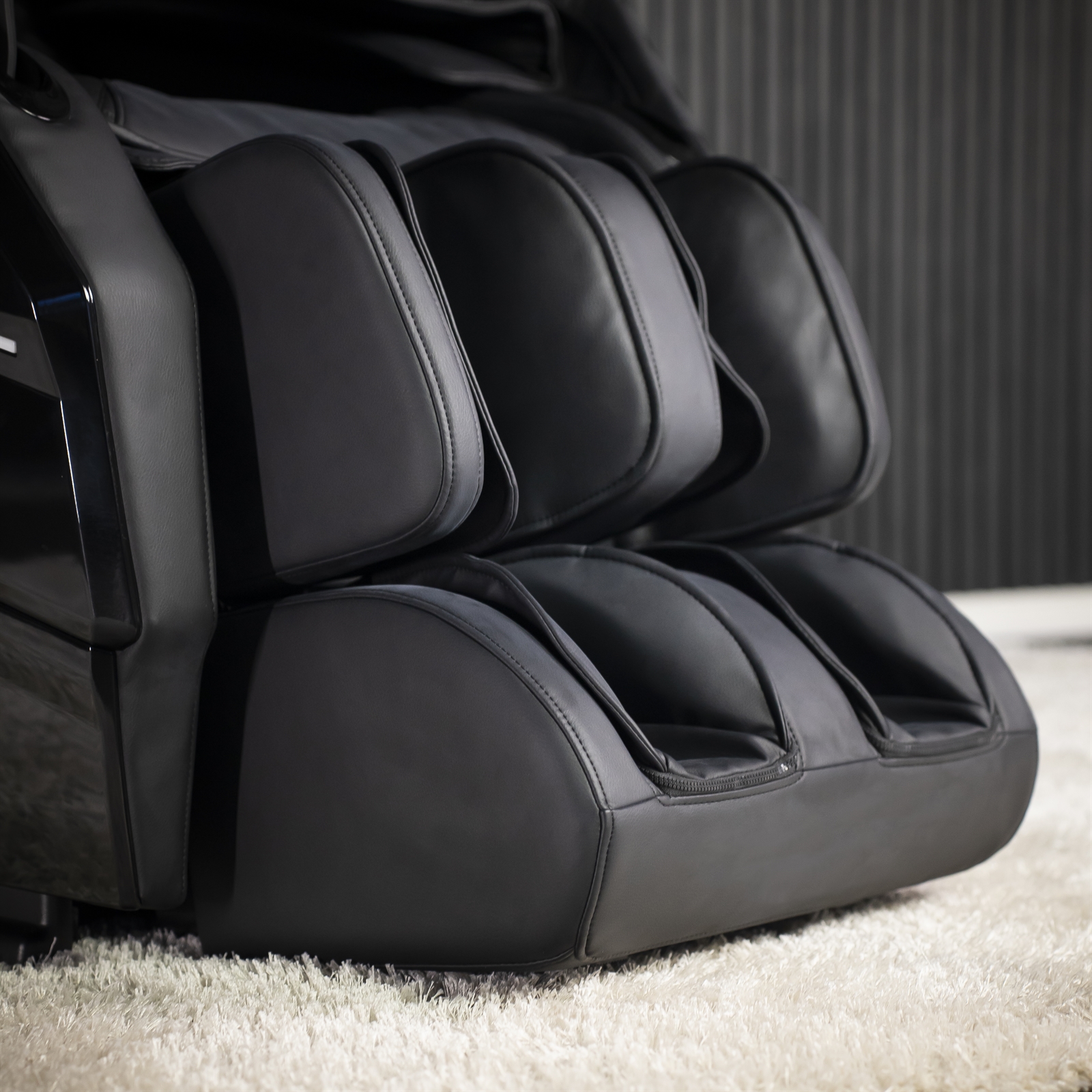 Under fötterna arbetar intelligenta fotrullar i perfekt samspel med omgivande venpumpar, vilket skapar en komplett fot- och vadmassage. Dessa element masserar inte bara dina fotsulor med rotationsrörelser, utan skapar också en känsla av sträckning och tryck längs vaderna – som en professionell spaupplevelse hemma. Detta hjälper effektivt mot ömma fötter, svullna ben och rastlöshet i kroppen.