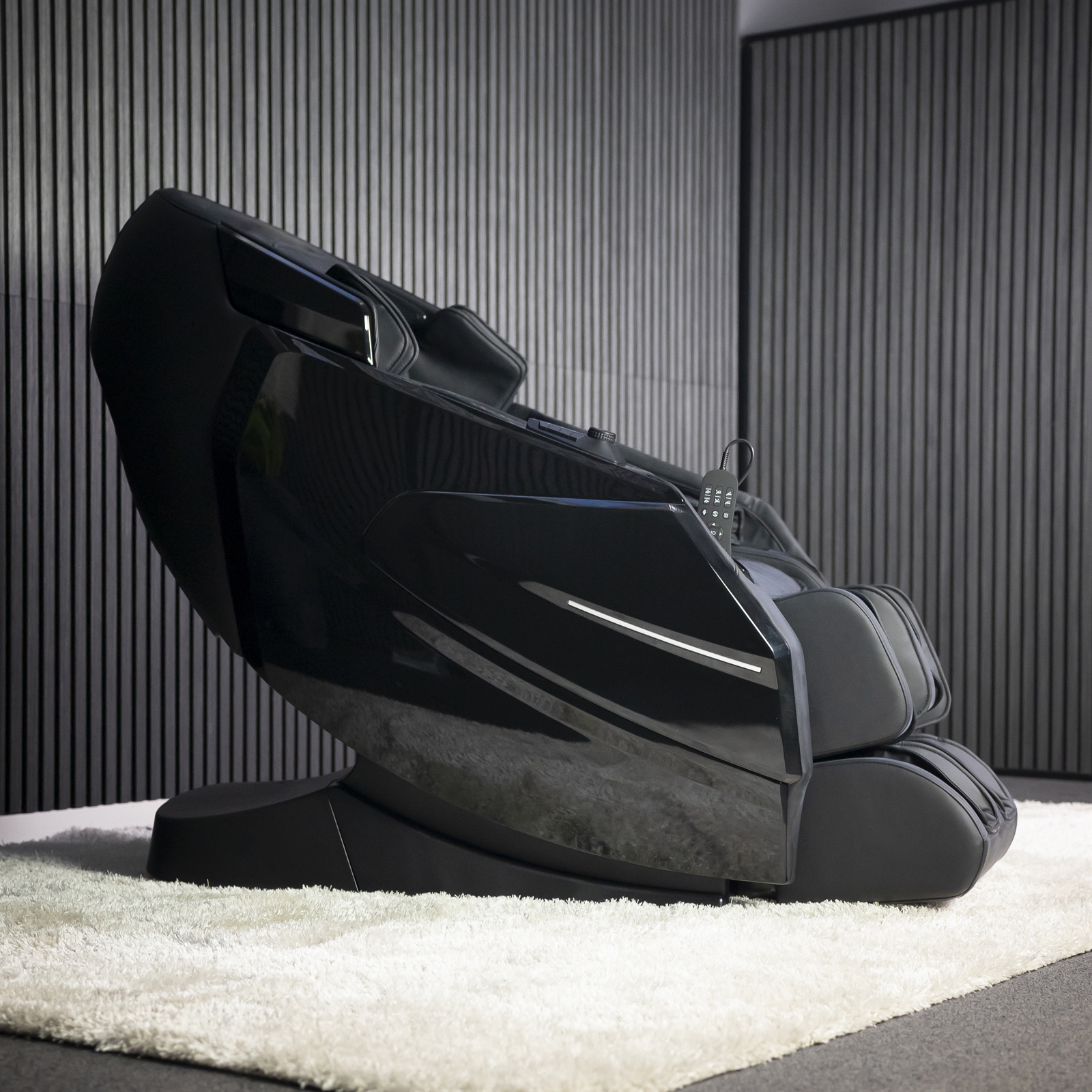 Teknik och design förenas i den smarta fjärrkontrollen till IWAO Premium 4D massagefåtölj, som gör det enkelt och intuitivt att styra alla funktioner. Med några få tryck kan du välja bland en rad förinställda massageprogram som automatiskt anpassas till din kropp via fåtöljens intelligenta kroppsskanner. Allt är samlat på ett ställe – så att du kan luta dig tillbaka och njuta av en personlig massageupplevelse.